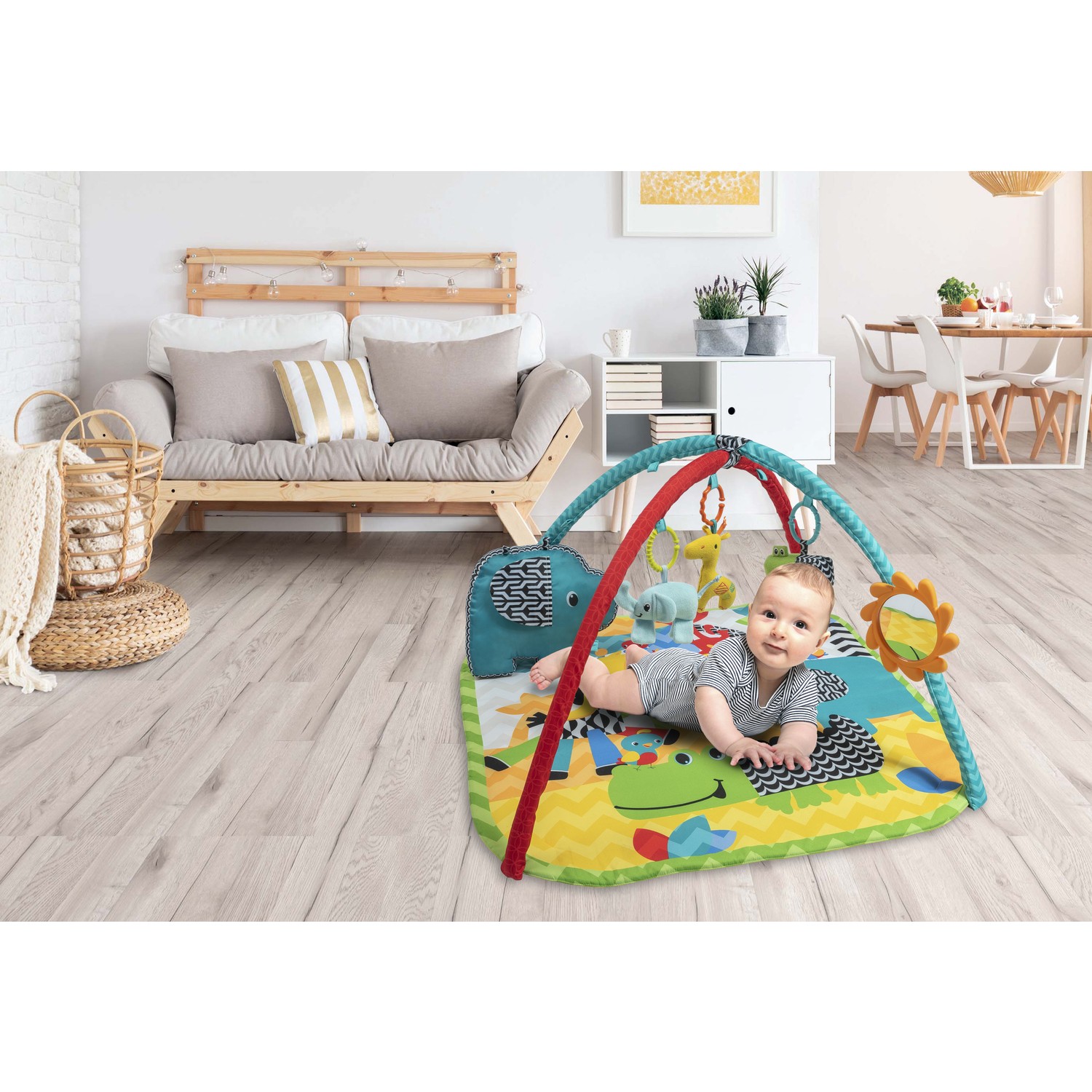 - Kontrast renk ve desenlerle dolu oyun halısı bebeğinizin gelişimini destekler ve ona eğlenceli oyun zamanları sunar.