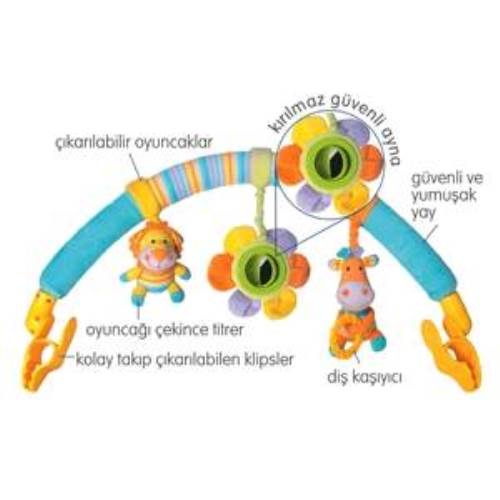 Araba koltuğu ve puset yayı ,Sallanan titreşimli oyuncaklar ,Kırılmaz güvenli ayna, diş kaşıyıcı ,Kolay takıp çıkarılabilen güvenli ve yumuşak yay BL1015