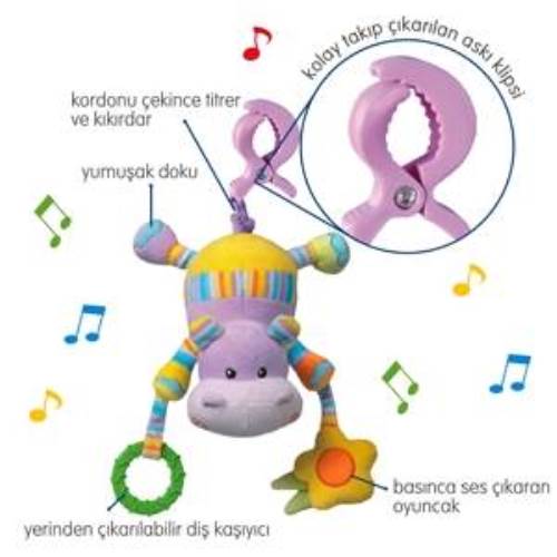 Diş kaşıyıcı ,Eğlenceli kıkırdama sesi, titreşimli ,Askı klipsi ,Eline basınca ses çıkarır ,Yumuşak ve güvenli BL1003