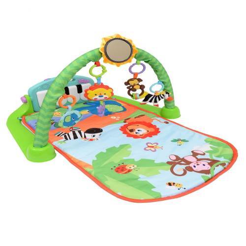 - Bebeğiniz halı üstünde yatıp oynayabilir; karın üstü yatarak eğlenebilir ve hışırdayan tasarıma sahip halka fil, melodiler çalan aslan, sevimli maymun çıngırak, peluş zebra ve kendini keşfedebileceği ayna sayesinde keyifli zaman geçirebilir.