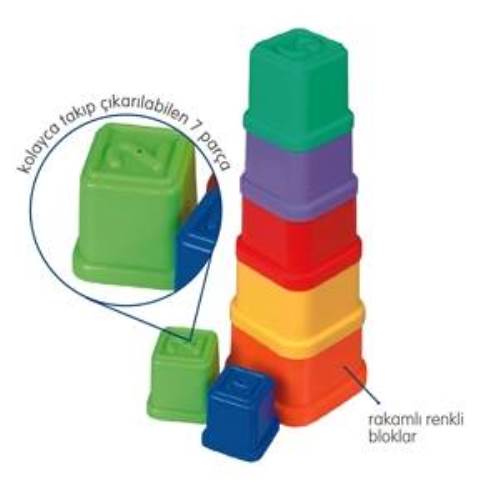 Üzerinde rakam bulunan eğitici kutular ,Parlak ve dikkat çekici kule ,İç içe geçebilen 7 parça BL1027