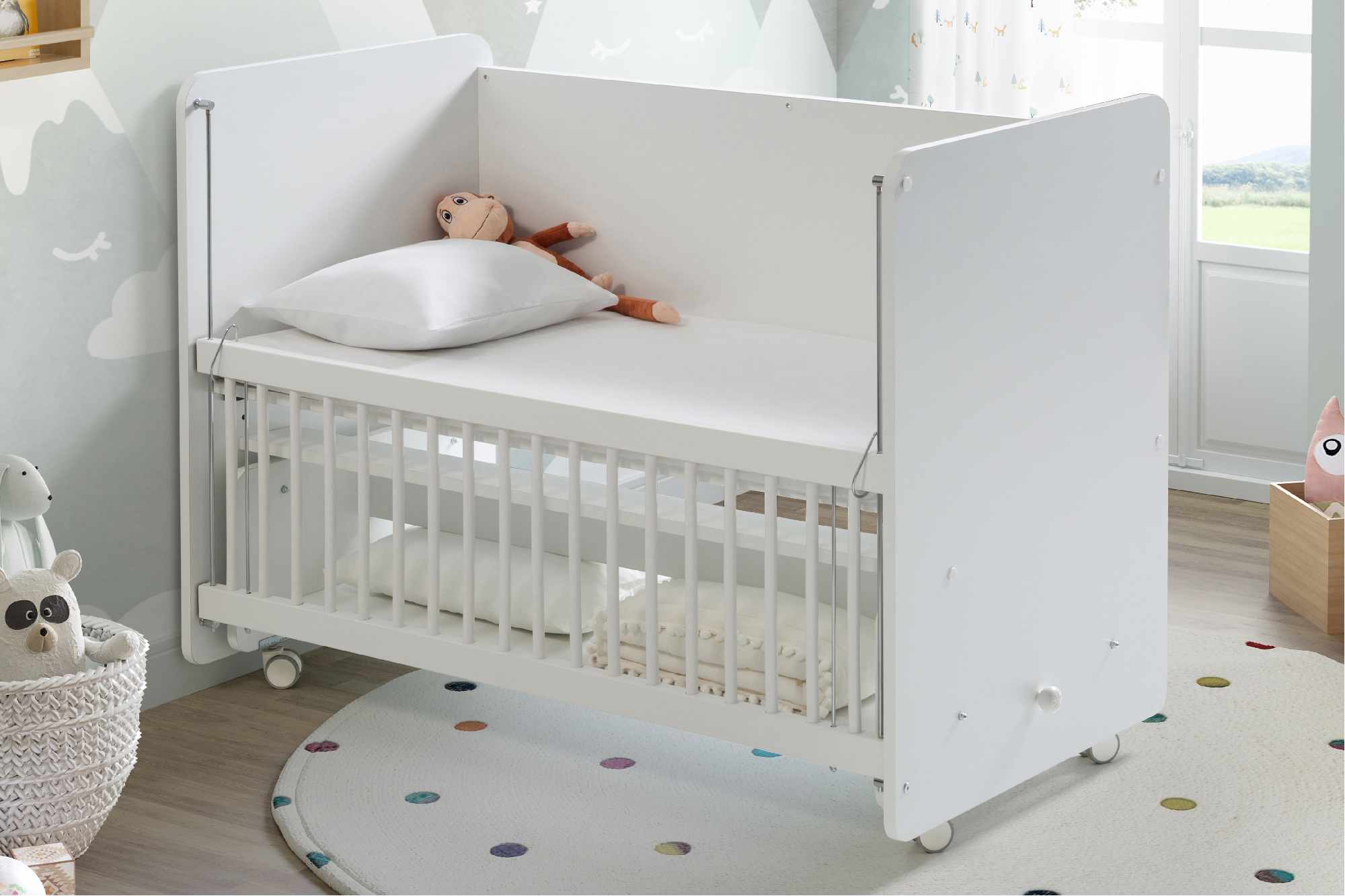 BW1090- Pratik Sallanır Tekerlekli Anne Yanı Bebek Beşik 60x120- Beyaz