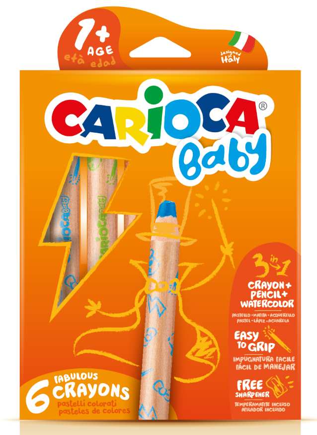 Carioca 42817 3 in 1 Jumbo Bebek Ahşap Gövdeli Boya Kalemi 6'lı