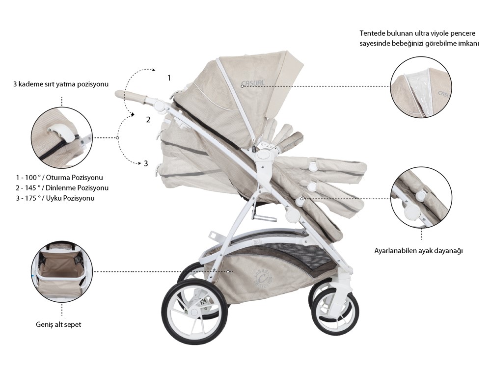 Ana kucağı, taşıma koltuğu ve oto koltuğu olarak kullanılabilme