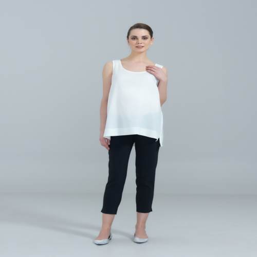 - Yüksek bel bantlı bir model olan hamile pantolonu, yumuşak bel bandı ikiye katlanarak da kullanılabilir.