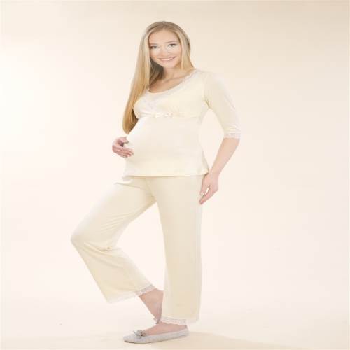 Chezmam 4708 Dantelli Yarım Kollu Emzirme Pijama / Krem Renk / M