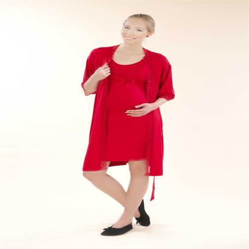 Chezmam 4709 Dantelli Viskon / Koton Sabahlık - Kırmızı