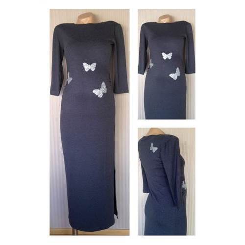 Chezmam 5550-U Maxi Hamile Elbise - Kelebek / Antrasit M