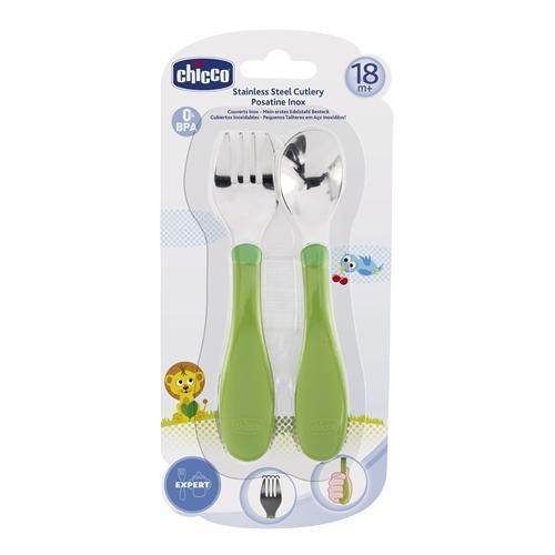 Chicco Paslanmaz Çelik Çatal Kaşık Seti 18m+ Yeşil