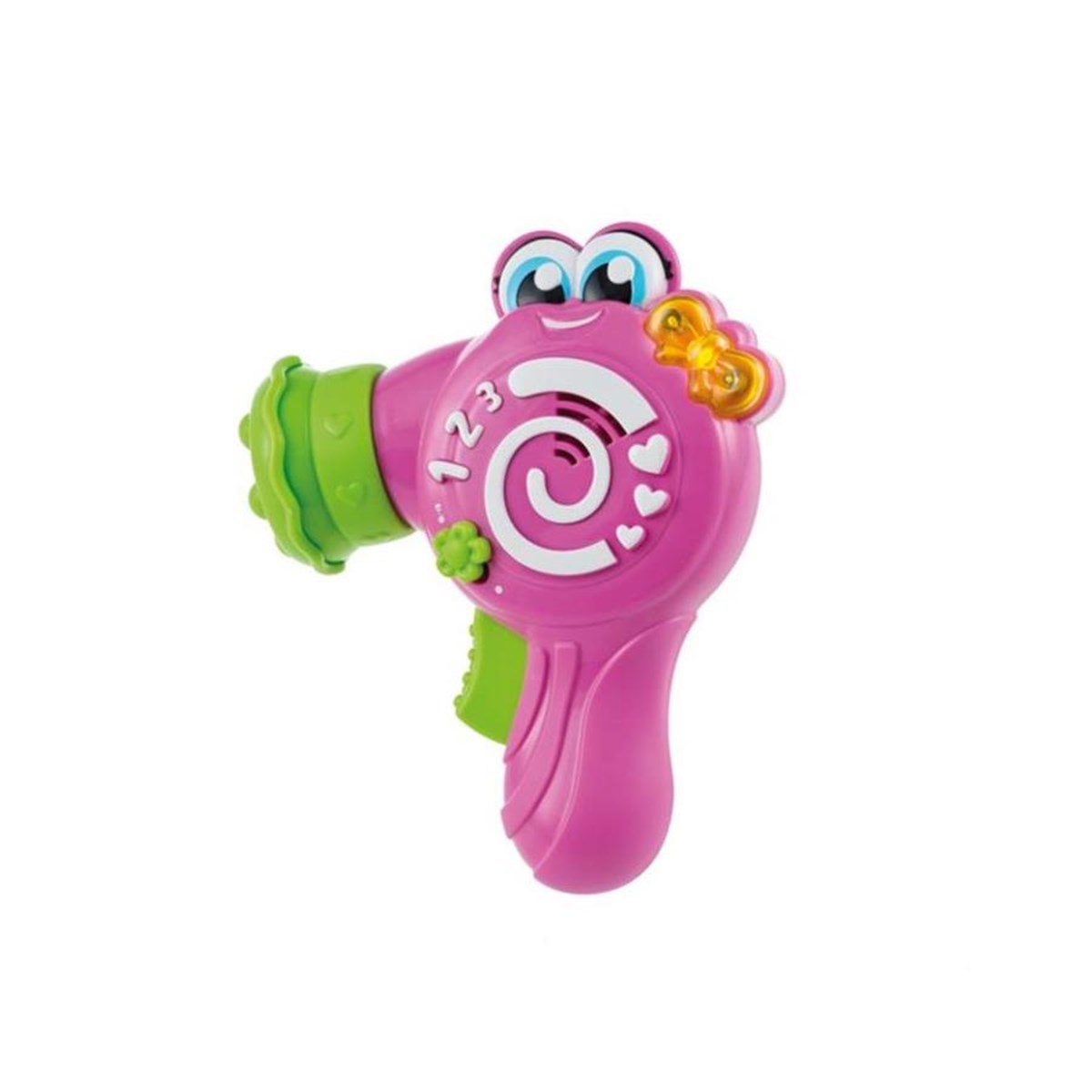 Elektronik ve mekanik aktivitelere ve yanan bir LED ışığa sahip, saç kurutma makinesi şeklinde eğlenceli interaktif oyuncak. Çocuğunuz, düğmeye bastığında, fan çalışır, dışarı hava üfler ve eğlenceli ses efektleri devreye girer. El becerisini, koordinasyonu ve görme duyusunu geliştirir. Beni Dene fonksiyonu - görünür AÇMA/ KAPAMA