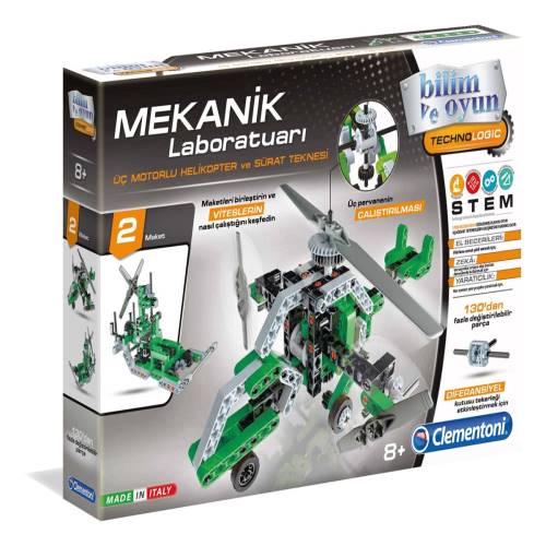 - Clementoni-Helikopter&Tekne Mekanik Laboratuvar ile temel mekanik ve mühendislik ilkelerini kullanarak çocukların eğlenerek öğrenmelerini sağlayan zengin bir mekanik labaratuvar seti sunuyor.
