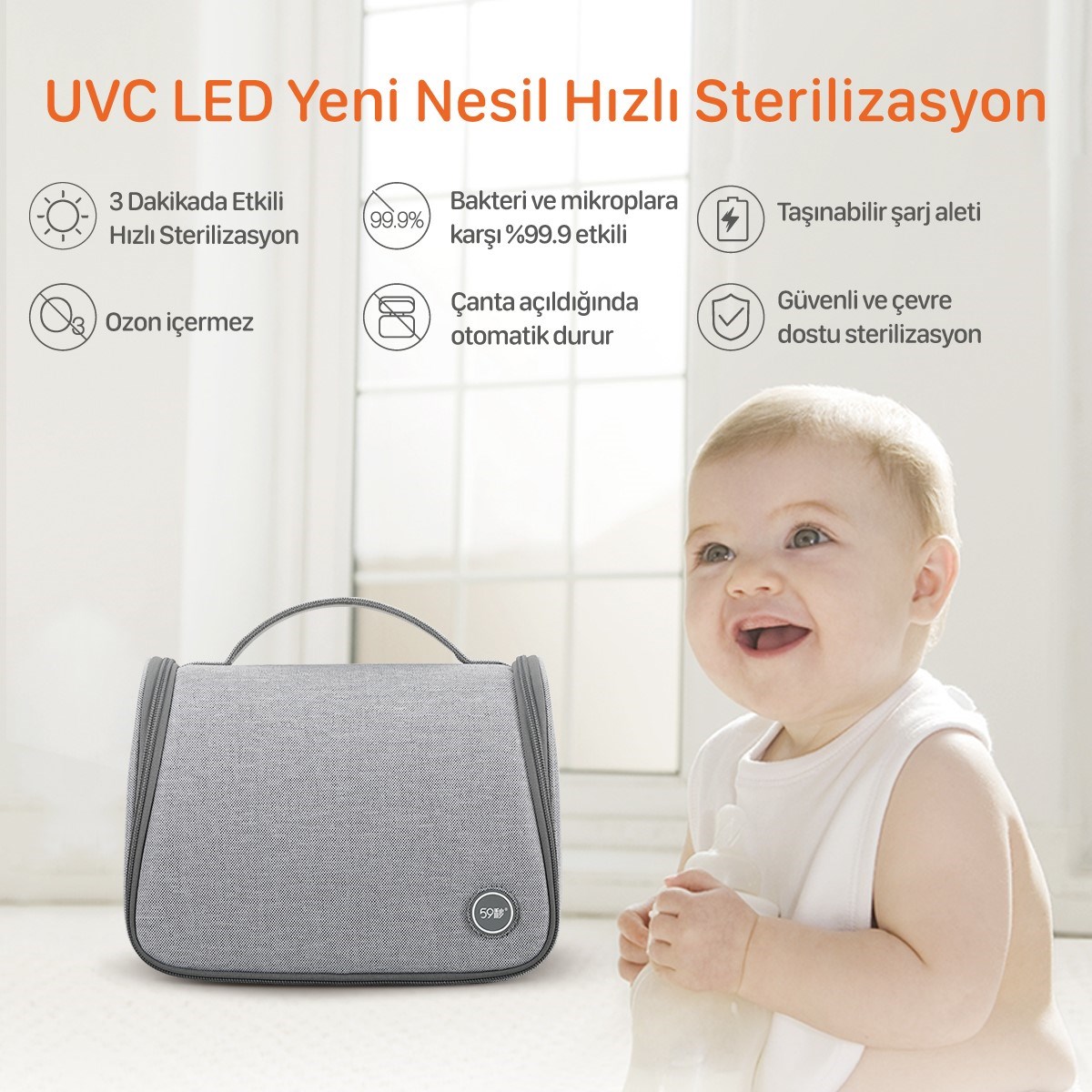 - Hızlı ve Güvenli: Sterilizasyon işlemi 3 dakikada gerçekleşir. Çanta açıldığında sterilizasyon işlemi otomatik olarak durur. Kimyasal kalıntı bırakmaz, ozon ve civa içermez.