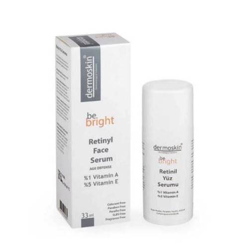 - Be Bright Retinol Face Serum Dermoskin Be Bright Retinil Yüz Serumu, tüm cilt tipleri için leke ve cilt tonunu açmak ve kırışıklıkları önlemeye karşı cilde bakım yapan kadifemsi yapıda bir serumdur.
