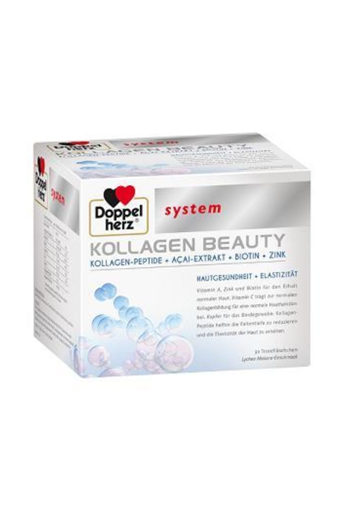 - Doppelherz system KOLLAGEN BEAUTY 25 mLu2019lik içmeye hazır şişelerde liçi ve kavun tadında hazırlanmıştır.