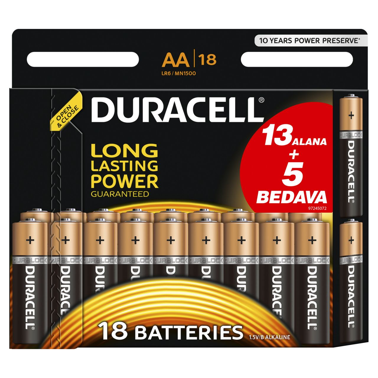 Duracell Alkalin AA Kalem Pil (13+5) 18'li Paket