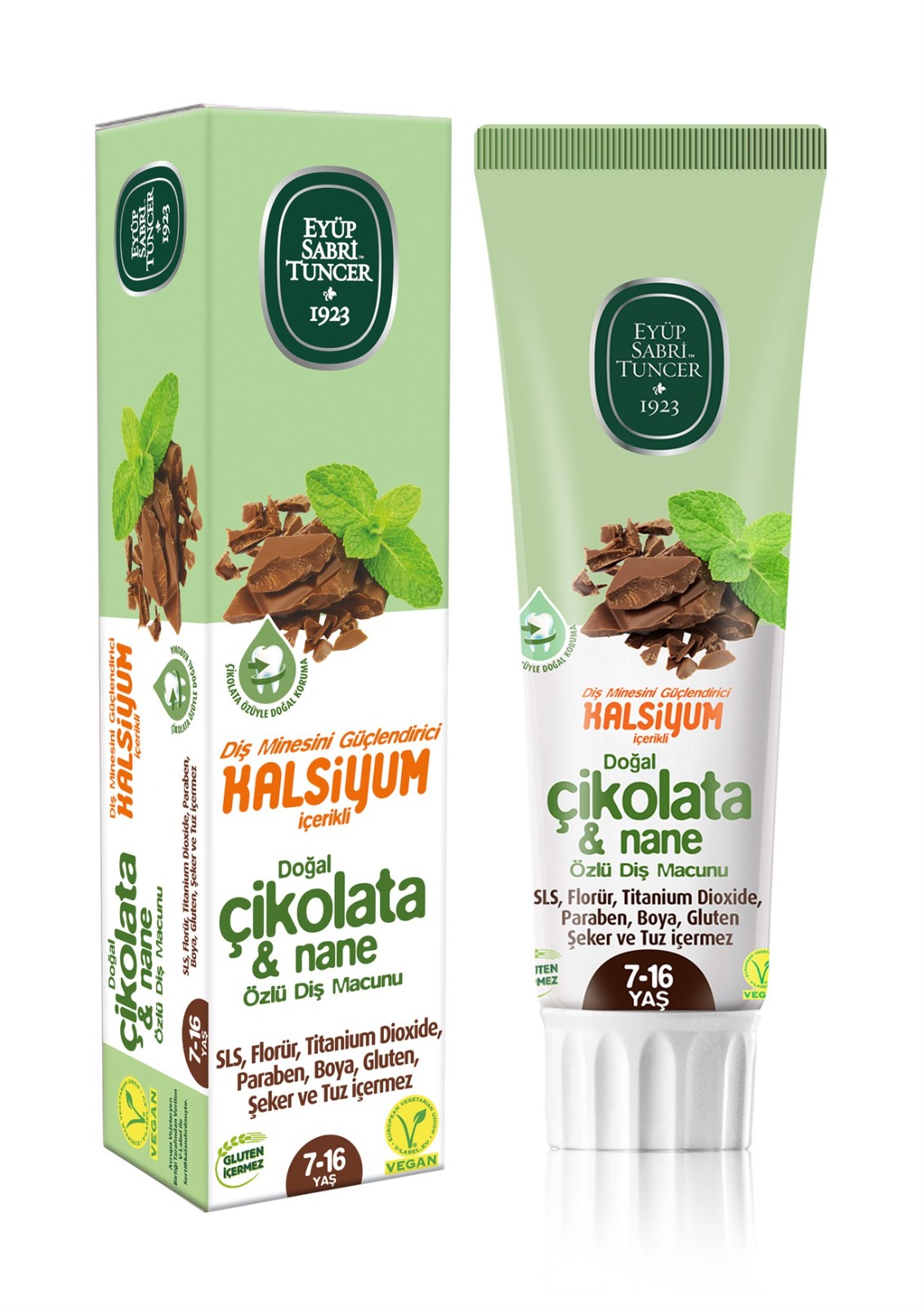 - Eyüp Sabri Tuncer Doğal Çikolata ve Nane Özlü Diş Macunu,theobramin, kalsiyum, magnezyum, fosfor içeren kakao özü ile diş çürüklerini engeller ve doğal etkili bir koruma sağlar.