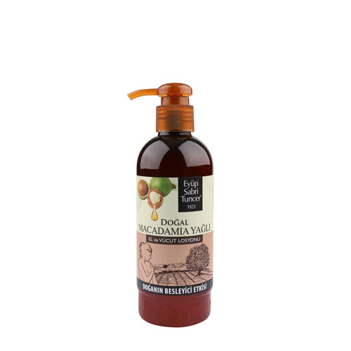 - Eyüp Sabri Tuncer Macadamia Yağlı El ve Vücut Losyonu, içeriğinde bulunan insan vücudundaki yağın yapısına en uyumlu yağ olan omega -7 sayesinde yıpranan ve tahriş olan deri tarafından hızla emilir, cildinizde yağlılık hissi bırakmadan etkin ve uzun süreli nemlendirme sağlar.