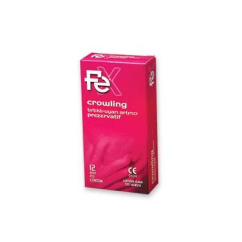 Fe Crowling Prezervatif 12'li (Tırtıklı-Uyarı Artırıcı)Açıklama :Fe Tırtıklı, üzerinde bulunan desenlerin uyarıcı özelliği ile, ilişkiyi çok daha farklı boyutlara taşıyan bir prezervatiftir.Spermisit olmayan krem ile kayganlaştırılmıştır.Doğal latex kauçuktan üretilmiştir.Kokusuz ve rezervuar(hazne) uçludur.