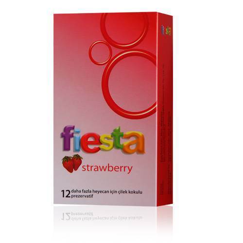 Fiesta Strawberry PrezervatifÖzellikler :- Fiesta Strawberry aşk hayatınıza tutku katmak için tırtıklı ve çilek kokulu...- Cinsel yaşamınıza heyecan katacak 6 eğlenceli seçenek...- Her Fiesta kondomu en zorlu kalite standartları ile, %100 elektronik olarak test edilmiştir.- En yüksek uluslararası kalite standartlarına sahiptir.- Üstün kalitedeki hammadde, koku yapmayan formülü ve en son teknolojik yenilikler kullanılarak üretilir.