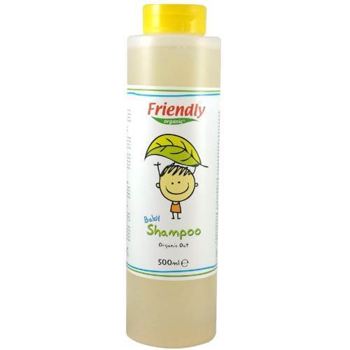Bebeklerin hassas cildi için özel olarak geliştirilen Friendly Organic® Bebek Şampuanı içeriğindeki organik zeytinyağı özlü temizleyici maddeler ile bebeklerin saçını nazikçe temizler.