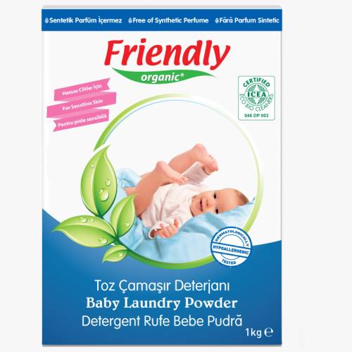 - Friendly Organic® Toz Çamaşır Deterjanı bebekler ve hassas ciltler için özel olarak geliştirilmiştir.