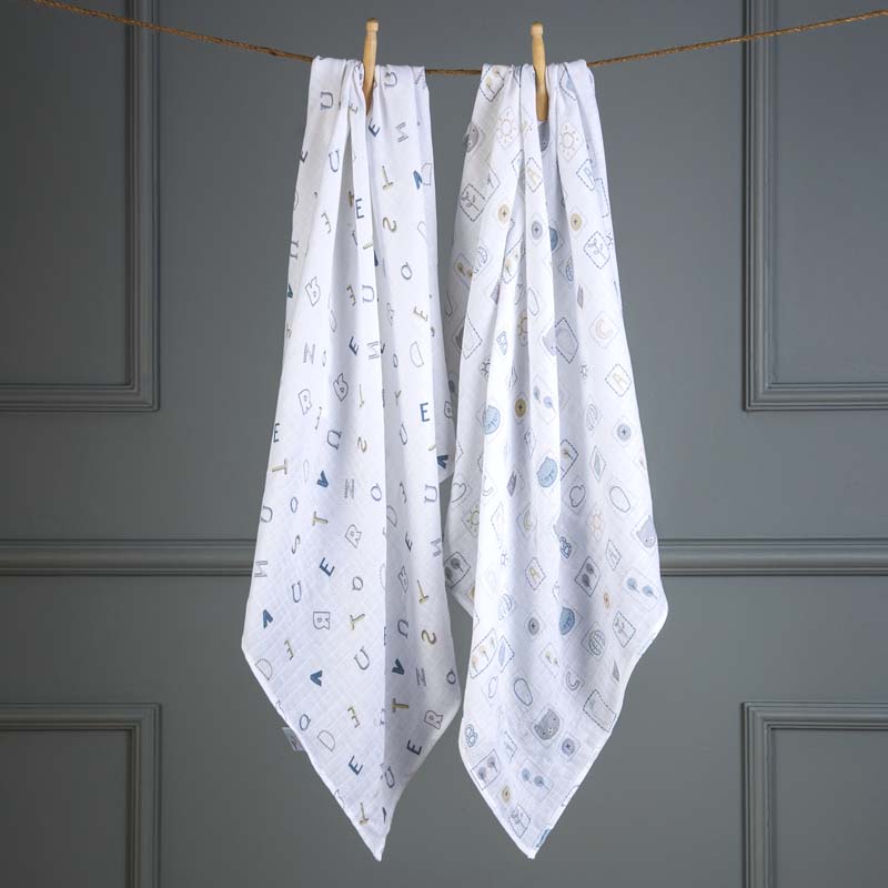 Funna Baby 9514 Adventurer 2'li Muslin Battaniye - 90x90 cm / Mavi