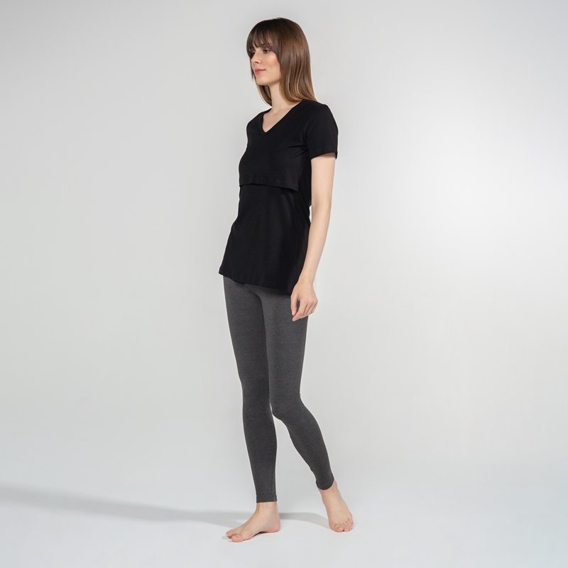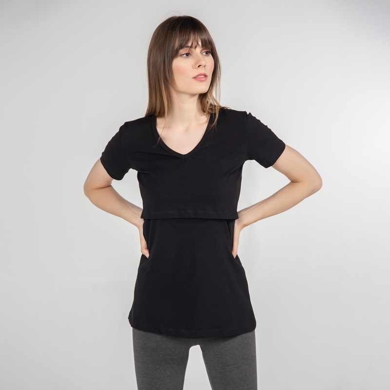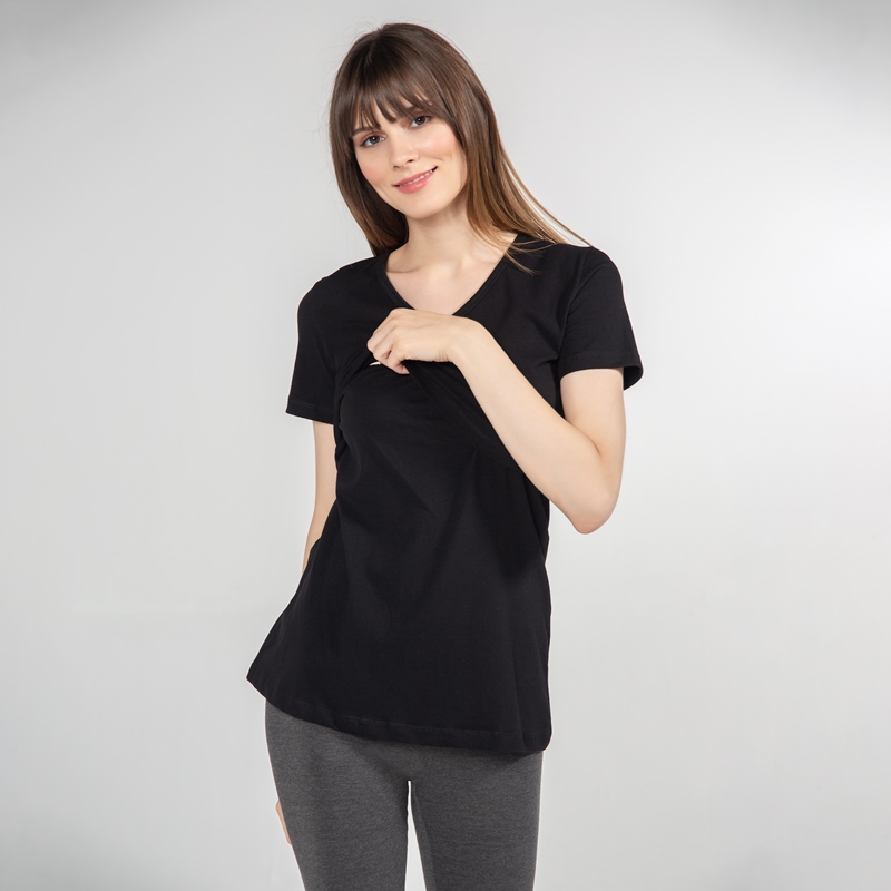 Funna Mamma 7643 V-Yaka Emzirme T-Shirt - Nora - Siyah / M Beden