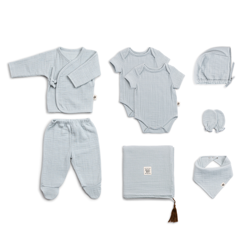 Funnababy 0293 Muslin Yenidoğan Seti - 8 parça - Dove - Gri - 0 /3 Ay