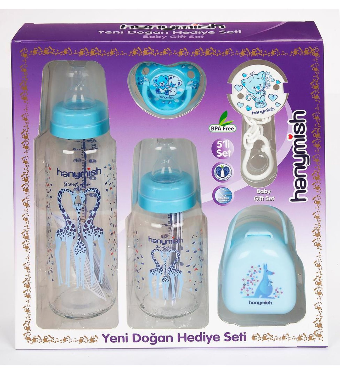 Hanymish 653 Yenidoğan Cam Hediye Seti 4'lü - Mavi