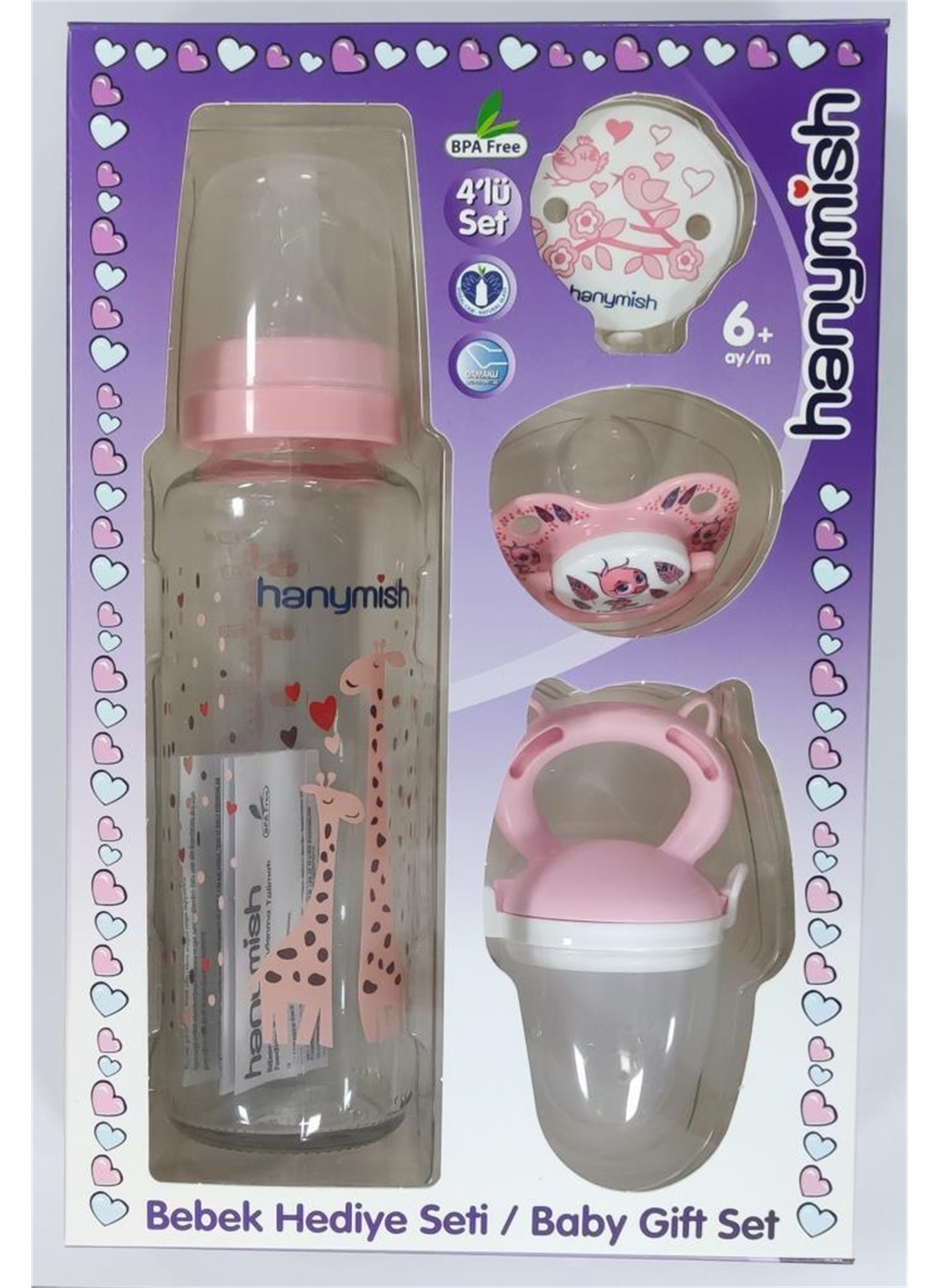 Hanymish 652 Yenidoğan Cam Hediye Seti 4'lü - Pembe