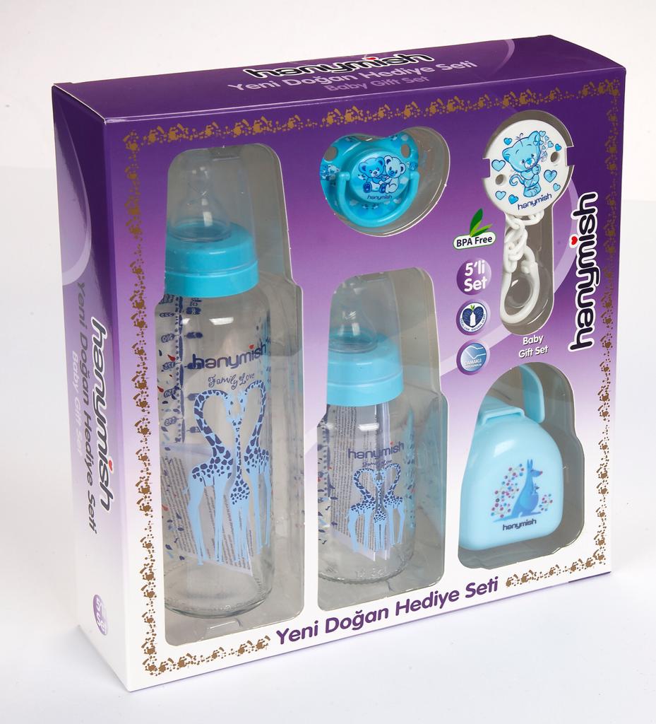 Hanymish Yenidoğan Cam Hediye Seti 5'li - Mavi - 651