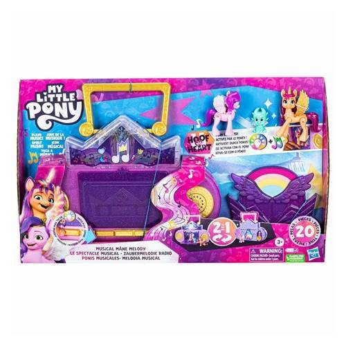 - Müzikli ve Işıklı Mane Melody, Pony'lerle aktif hale gelen ışıklar ve sesler içeren bir oyun setidir. Bir tarafında oyuncak yele kurutucu, aksesuarların saklandığı bir dolap ve oyuncak gökkuşağı aynası bulunur.