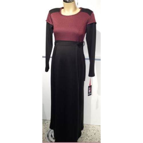 Hell Klar Deri Kombinli Uzun Hamile Elbise Bordo-Siyah 44 Beden
