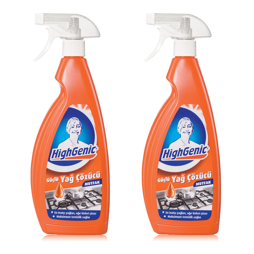 - HighGenic Güçlü Yağ Çözücü, özel geliştirilmiş güçlü formülü sayesinde mutfağınızda oluşan kirleri, inatçı ve yanmış yağ kalıntılarını, kurumuş yemek lekelerini kolayca temizler.