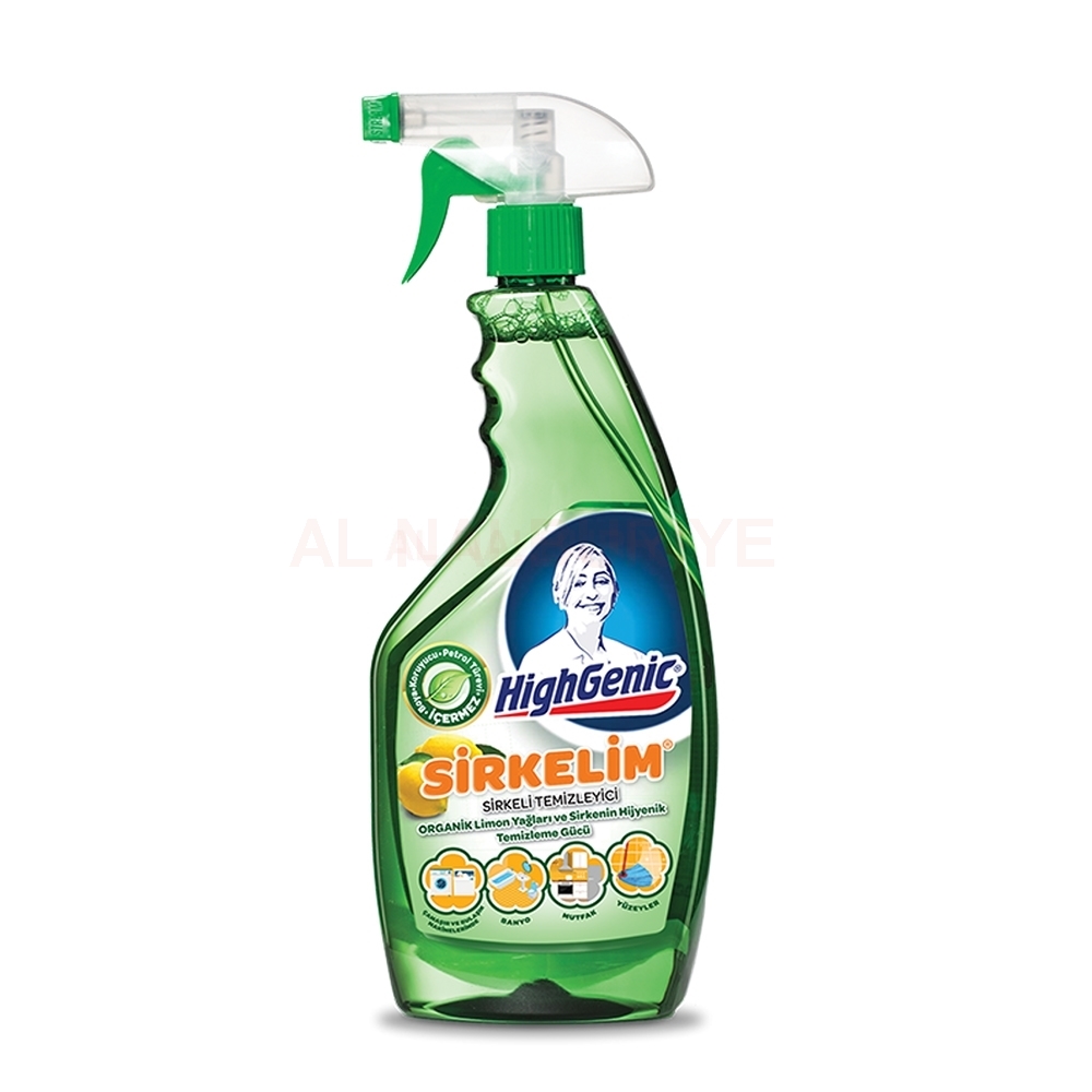 - Her işte her yerde hijyenik temizlik sağlayan Highgenic Sirkelim mutfak, buzdolabı, fırın, çaydanlık, banyo, lavabo, yüzeyler ve evcil hayvanların yaşadıkları ve temas ettikleri yerleri temizlemek için eşsiz bir formüle sahiptir.