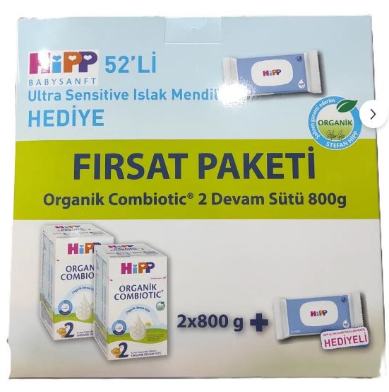 Hipp 2 Organic Combiotic Devam Sütü 2x800 gr + Islak Mendil Hediyeli Fırsat Paketi