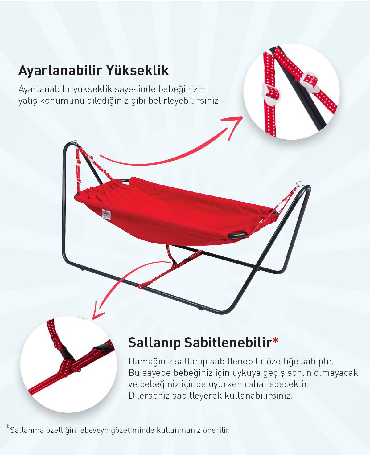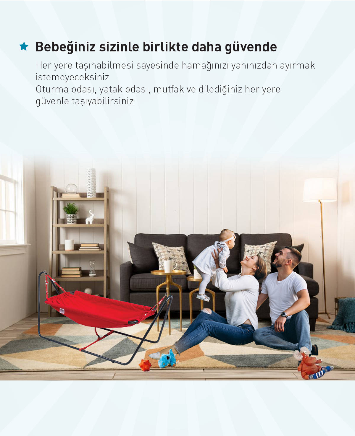 - Emniyet kemeri sayesinde güvenle kullanabilirsiniz.