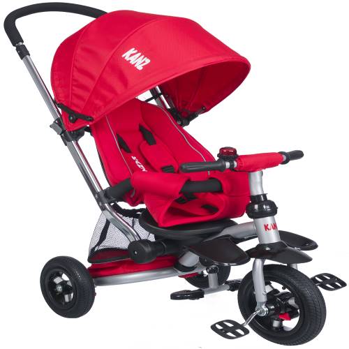 Kanz üç tekerlekli bisiklet 10 aydan itibaren kullanılabilir ve çocuğunuzla birlikte büyür. Direksiyon ile kolay manevra kabiliyeti, yerleşik süspansiyon ile 100% konforlu sürüş sağlar Diğer tüm itmeli bisikletlerin aksine birleşik itme sapı ile ebeveyn için sürüş kolaylığını arttırmak üzere dizayn edilmiştir.1.Aşama: 10 aydan itibaren ayak dinlenme aparatı ve yüksek sırt desteği ve kumaş ile desteklenmiş güvenli kullanım sağlar. 2. Aşama: 18 aydan itibaren ebeveyn kontrolü esnasında koltuk kendini buna uygun hale getirir. Bebeğinizi bir taraftan sürüş keyfini yaşarken bir taraftan da güven, denge ve motor becerilerini geliştirir. 3. Aşama: 24 aydan itibaren bebeğiniz pedal çevirmeyi öğrenir. 4. Aşama: 30 aylık çocuklar için ebeveyn kolunu çıkarıp güvenlik kavramasını kapatarak çocuğunuzun kendi kendine sürdüğü bir bisiklet haline gelir.