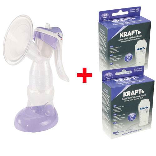 Kraft Handy Manuel Göğüs Pompası + Süt Saklama Poşeti 2x25 'li