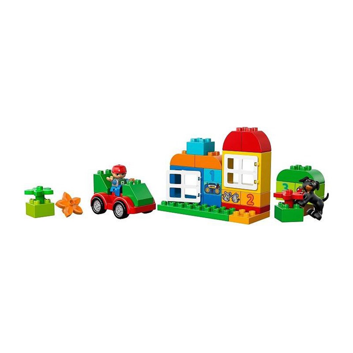 Sevimli hayvanlar, bir çocuk figürü ve lego parçaları.