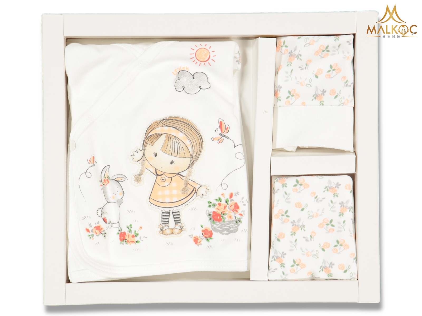 Leylek 4155-Kız 5 Li Güllü Kız Baskı Zıbın Set 0-3 AY