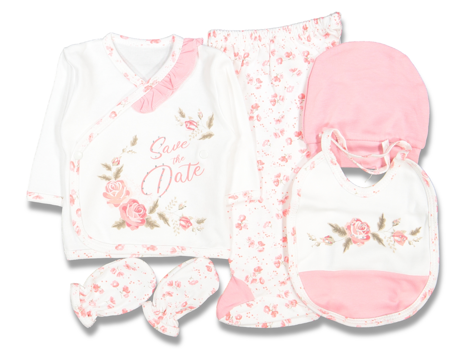 Leylek 4192-Kız 5 Li Çiçekli Zıbın Seti 0-3 AY