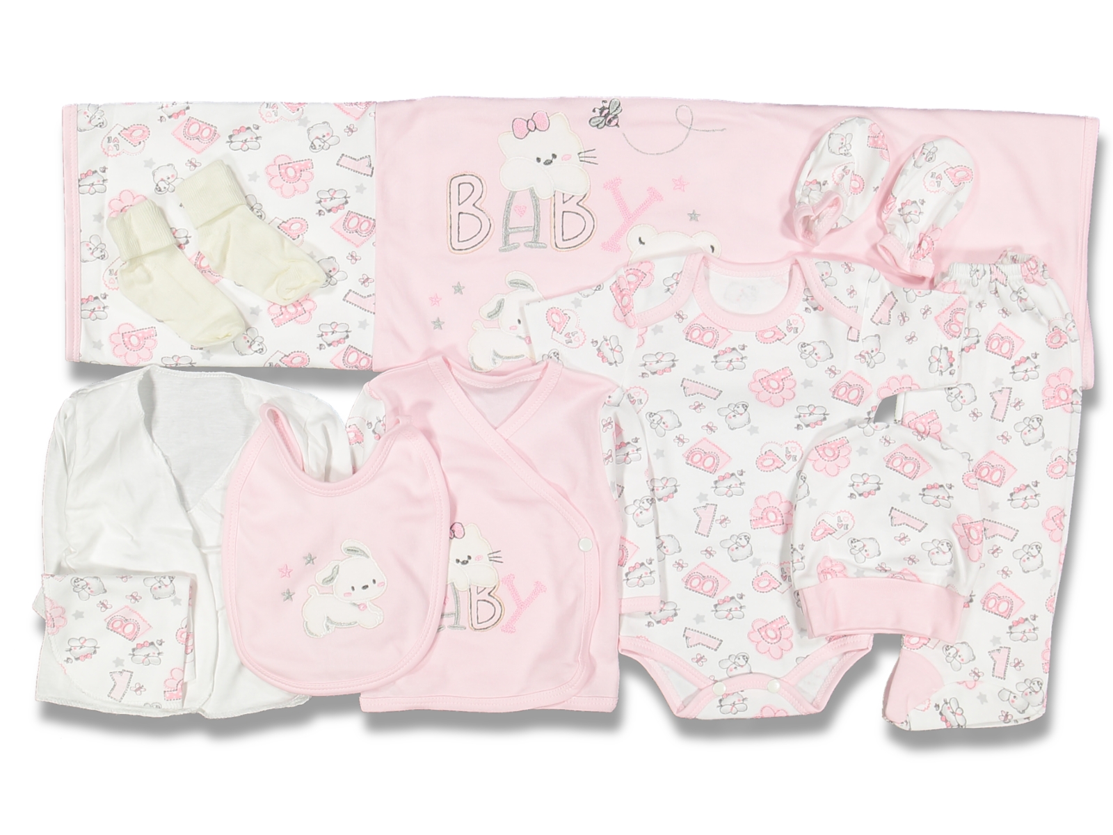 Leylek 4254-Kız 10 Parça Harfli Zıbın Seti 0-3 AY Pembe Renk