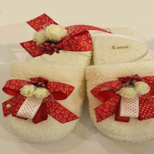 Limissi Beyaz Çiçekli Kalpli Kurdeleli Hamile Taç - Terlik Set