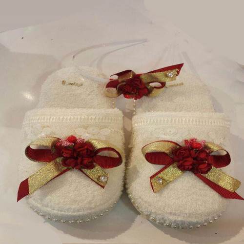 Limissi Kırmızı Çiçekli Sarı-Kırmızı Kurdeleli Hamile Taç - Terlik Set