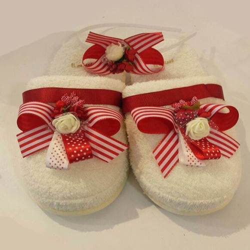 Limissi Kırmızı Şeritli Kırmızı Çizgili Kurdeleli Hamile Taç - Terlik Set