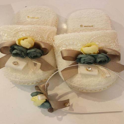 Limissi Sarı-Yeşil Çiçekli Kahverengi Kurdeleli Hamile Taç - Terlik Set