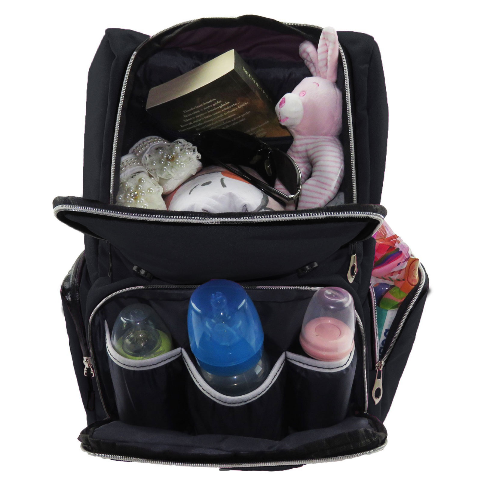 - Geniş iç hacim, kullanımı kolay termo cep, arka tarafta notebook gözü, özel bebek arabası askı aparatı ve diğer özellikleriyle artık anneler daha rahat özgür.