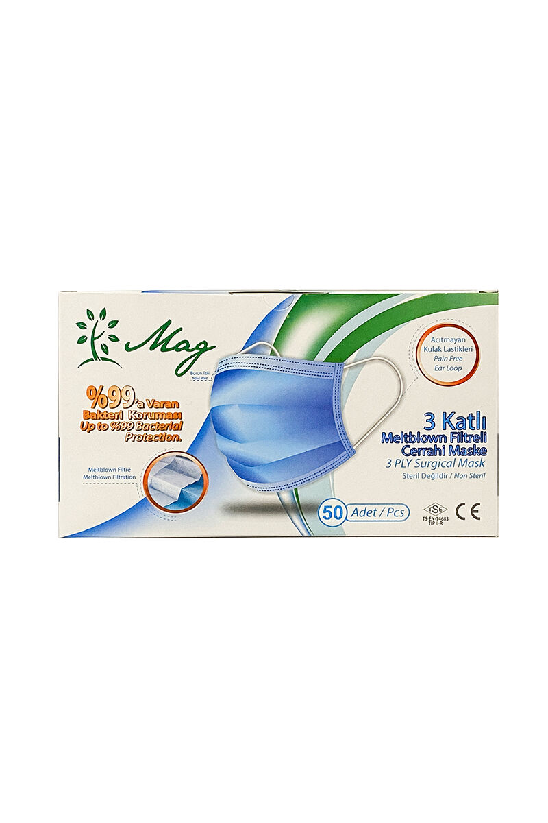 Mag Medikal Maske 3 Katlı Meltblown Filtreli Telli Beyaz 50'li