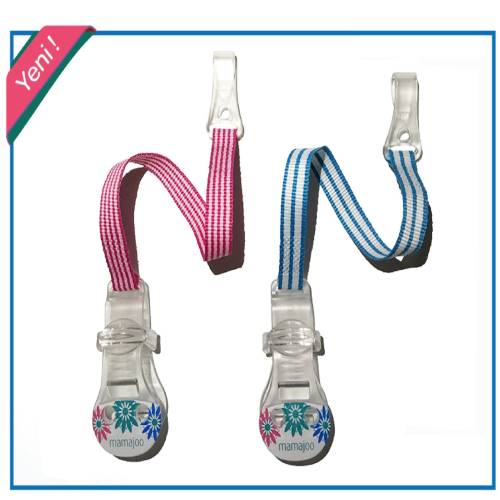 Mamajoo Emzik Askısı Halkalı emziklerin bebeğin kıyafetlerinin üstüne sağlamca takılmasını sağlayan Mamajoo Emzik Askısı, emziğin yere düşmesini ya da bebek tarafından yere atılmasını engeller. Böylece hem zahmetsiz bir kullanım sağlar hem de emzik yere düşmeyeceği için hijyenik kalır. Mamajoo Emzik Askısının pratik takma kilidi tek elle rahatlıkla açılıp kapanır. Emzik askısı, klipsinin geniş yüzeyi sayesinde kıyafetin üzerinde iz bırakmadan sıkıca durur, bebeğin hareket etmesi halinde bile düşmez. Bebek kıyafetine kolayca takılması için klipsin ağız açıklığı ekstra geniştir. Kanca emzik halkasına kolayca takılabilmesi için özel olarak tasarlanmıştır. Ökotex-Standart 100’e uygun yüksek kaliteli askı kumaşı tükürük ve ter geçirmez. Temizlik ve Bakım: Emzik askısını yalnızca aşındırıcı deterjan içermeyen nemli bir bezle siliniz ve iyice kurulayınız. Çamaşır makinesi veya bulaşık makinesinde yıkamayınız.